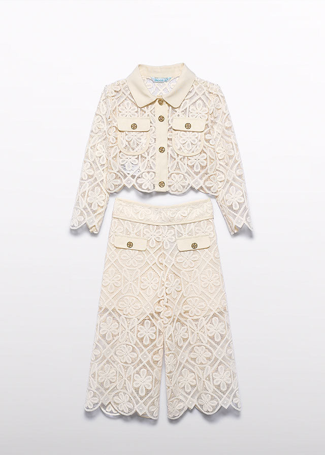 Conjunto top tricot y pantalon guipur beig