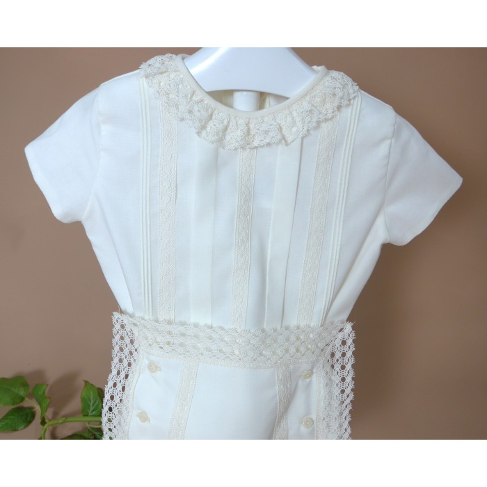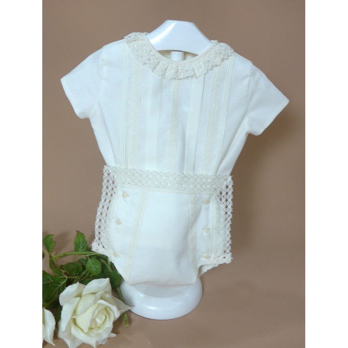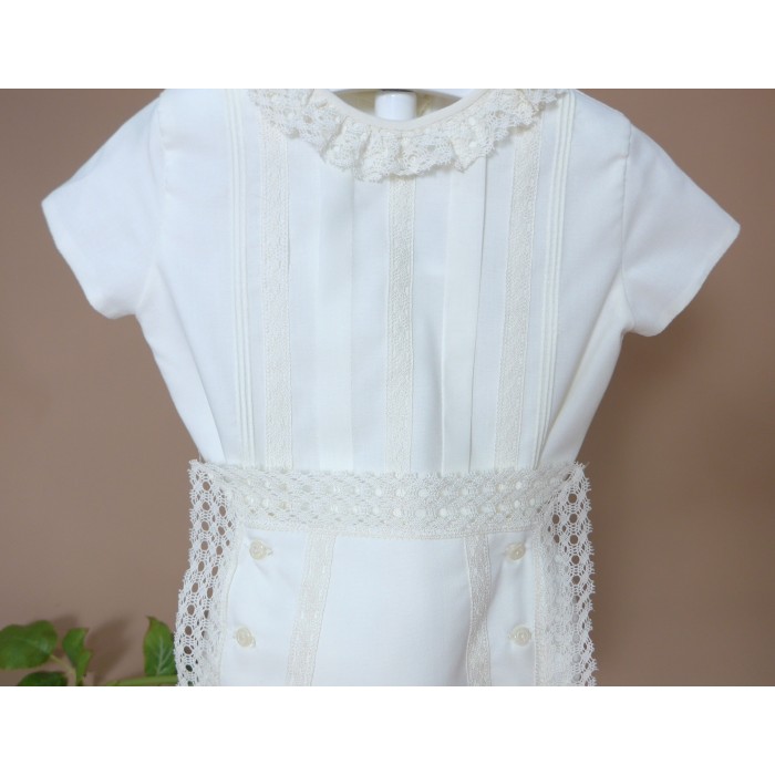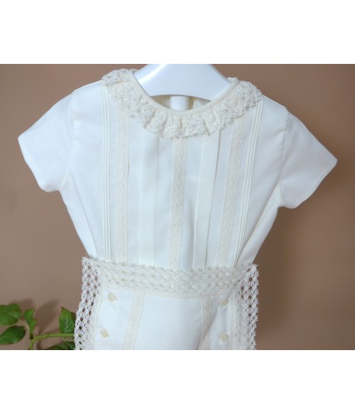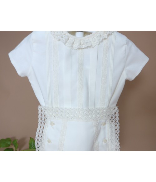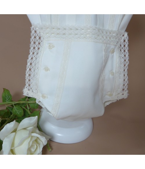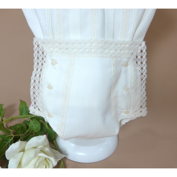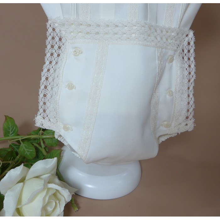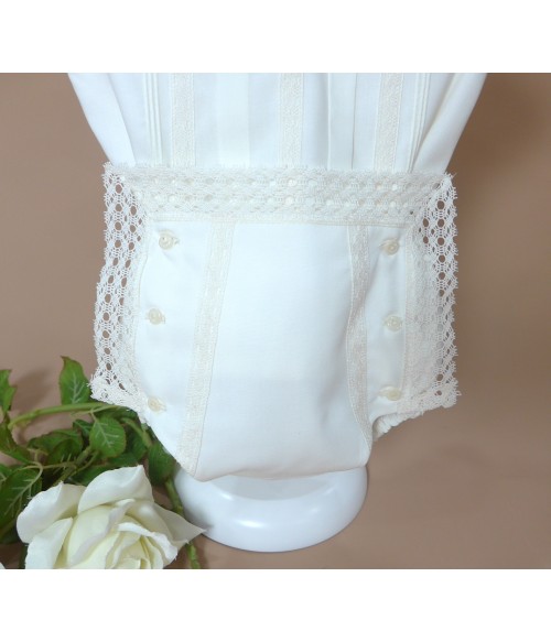 Braguita de batista con puntilla alrededor y 6 botones.