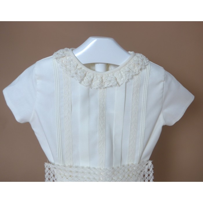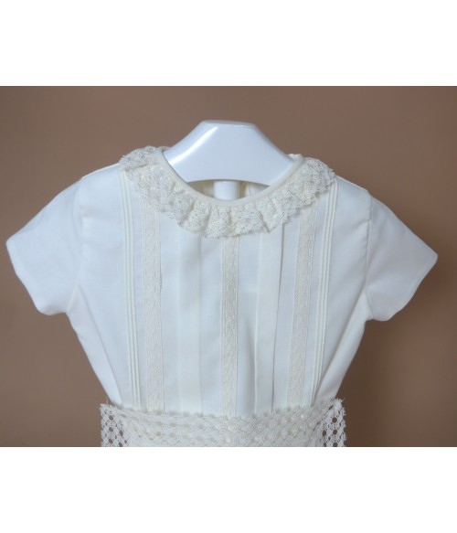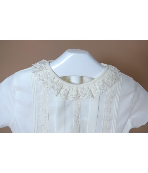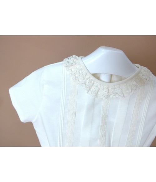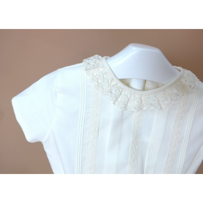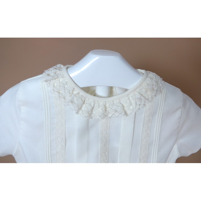 Conjunto de camisa de batista beig con puntilla al tono y cuello con puntilla beig.