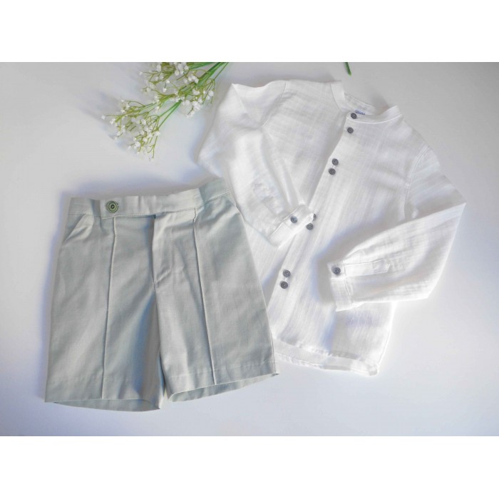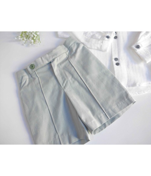 Short verde empolvado con pespunte y gomita interior para ajustar la cintura.
