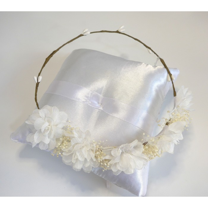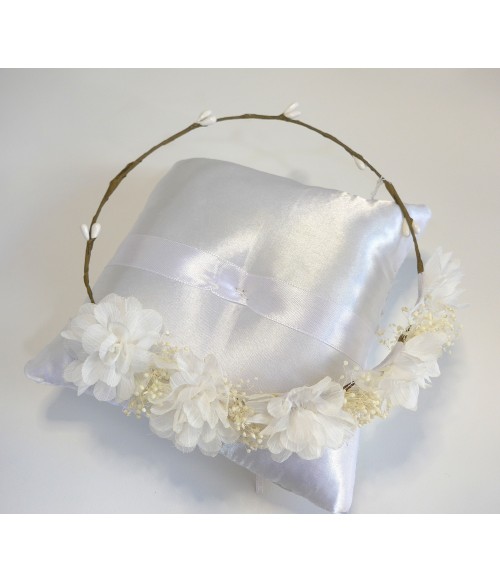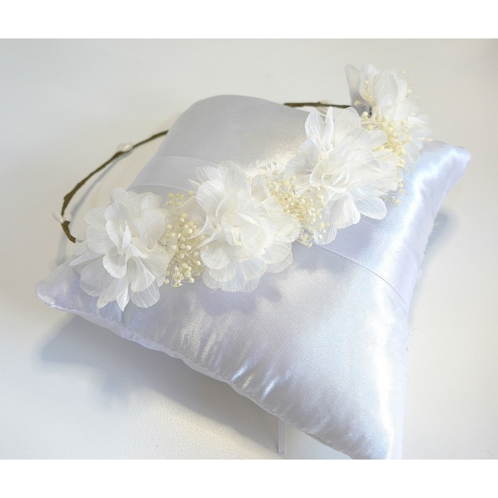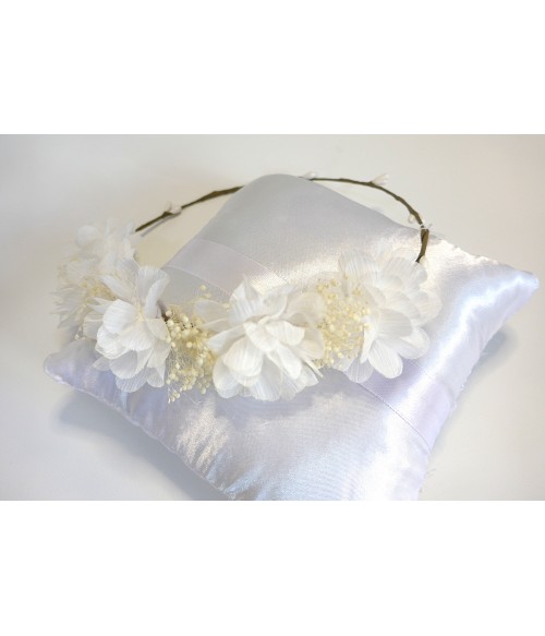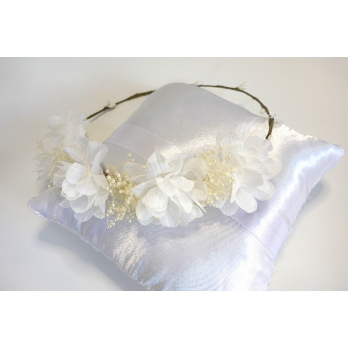 Corona de 5 flores de bambula blancas con paniculata beig.