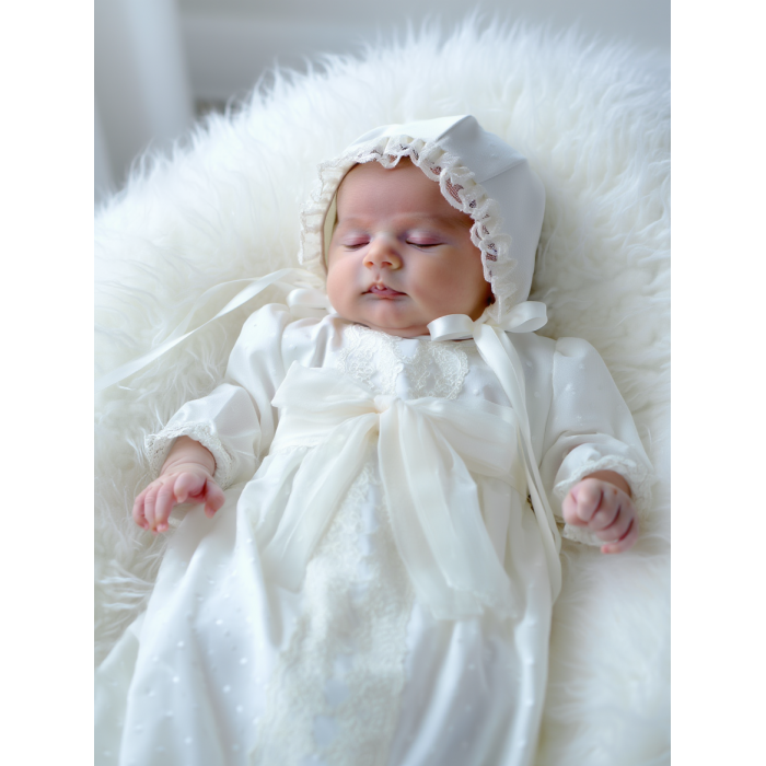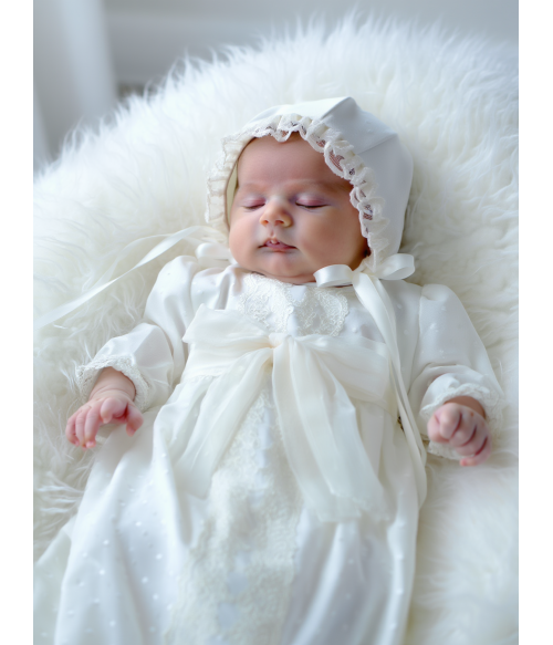 Faldon de tul bordado beig con puntilla ancha a lo largo, y en el bajo.