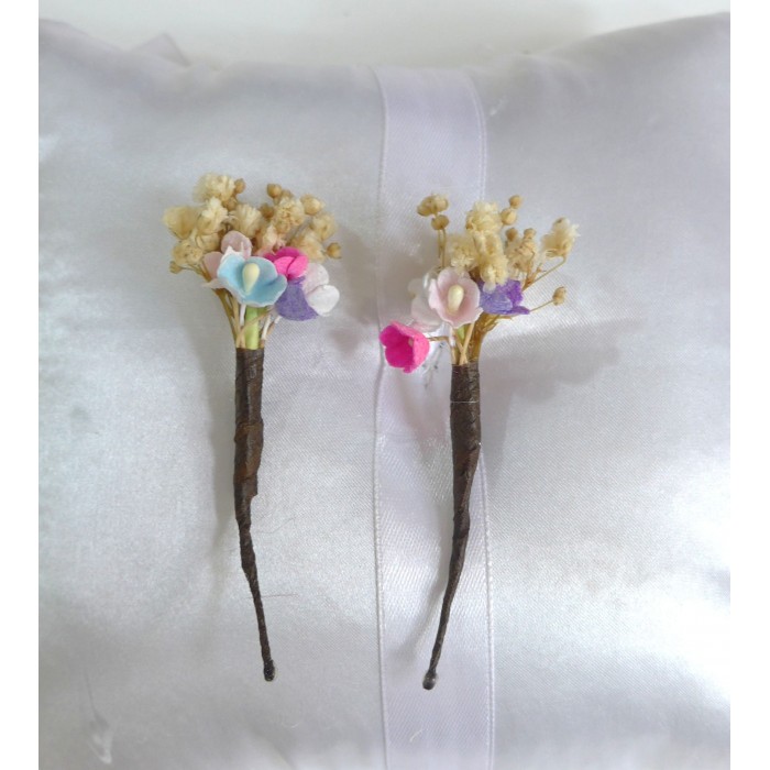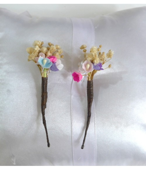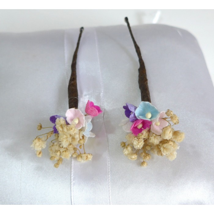 Pack de 2 pinchos con flores multicolor y flor seca.