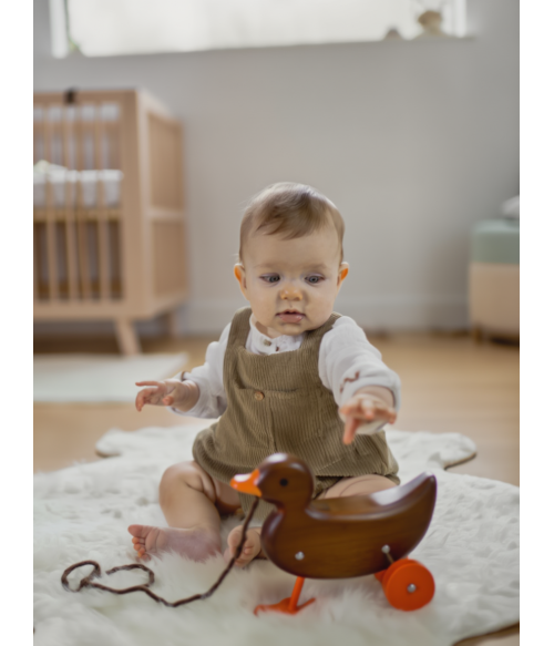 Pelele color topito de micropana y camisa a juego en blanco con bolsillo central.