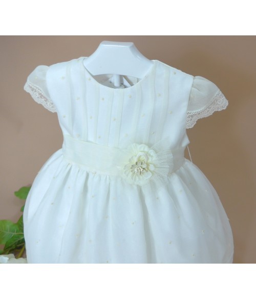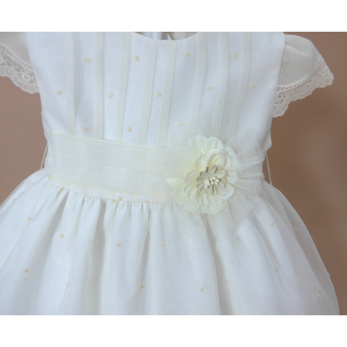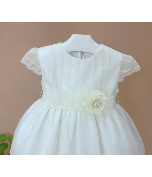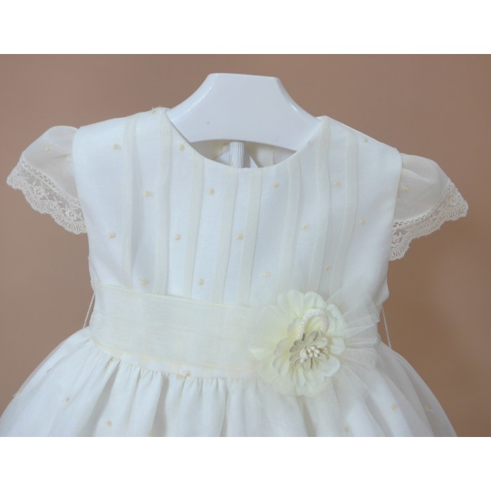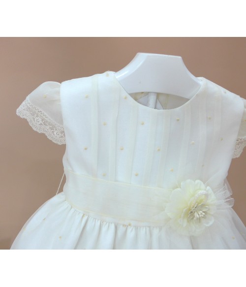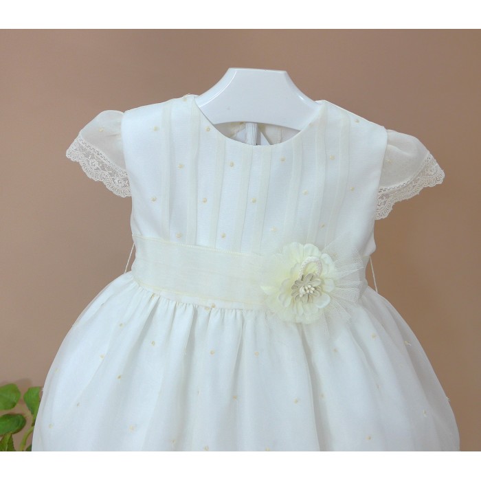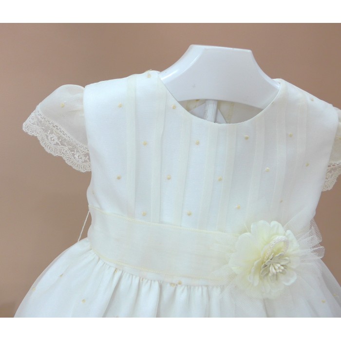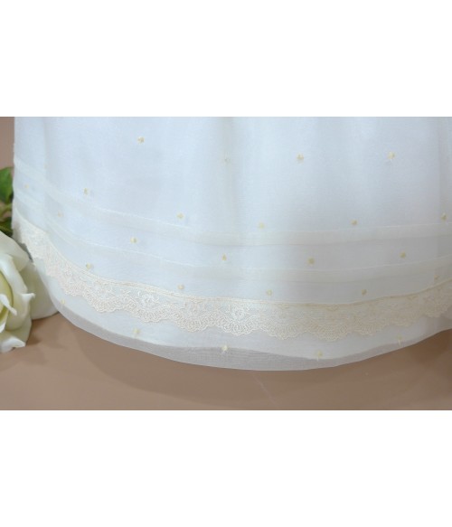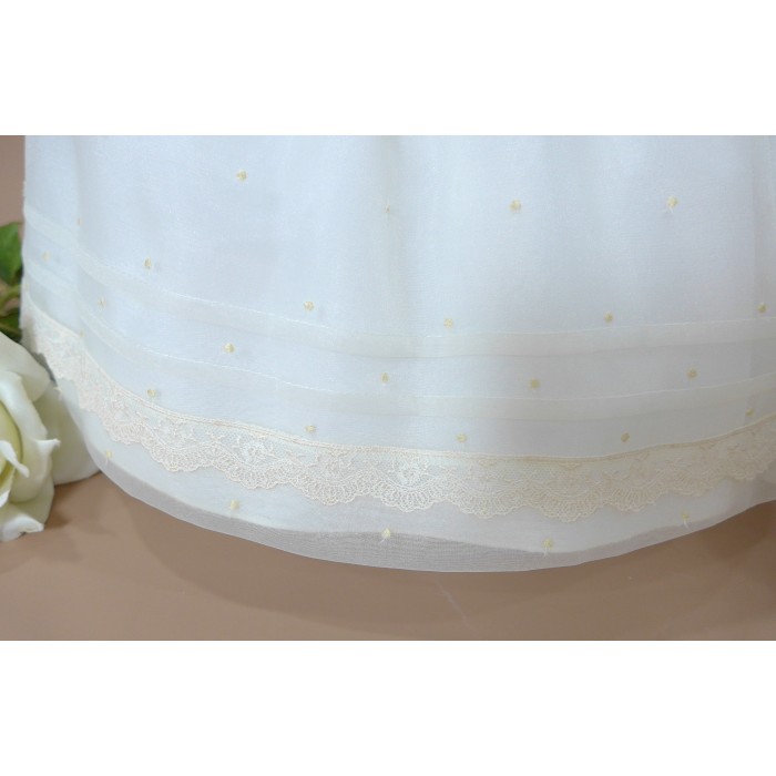 Vestido de organza beig todo bordado de manguita corta con puntilla bordada.