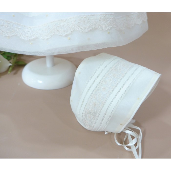 Manguita corta con puntillaa juego con la puntilla del bajo.