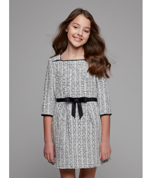 Vestido tweed blanco y negro con pequeñas lentejuelitas dandole un toque de brillito.